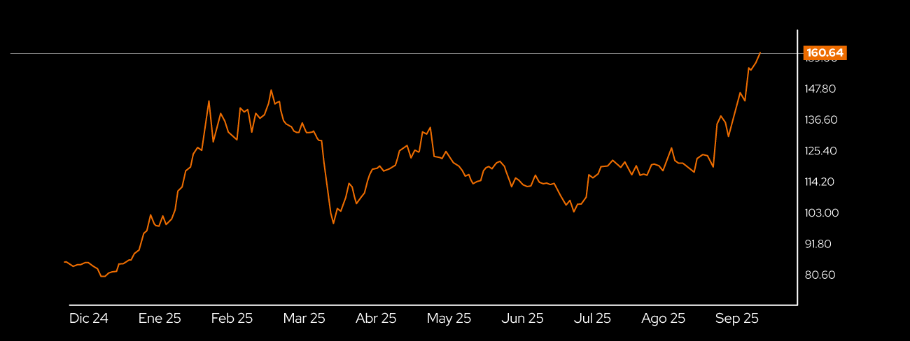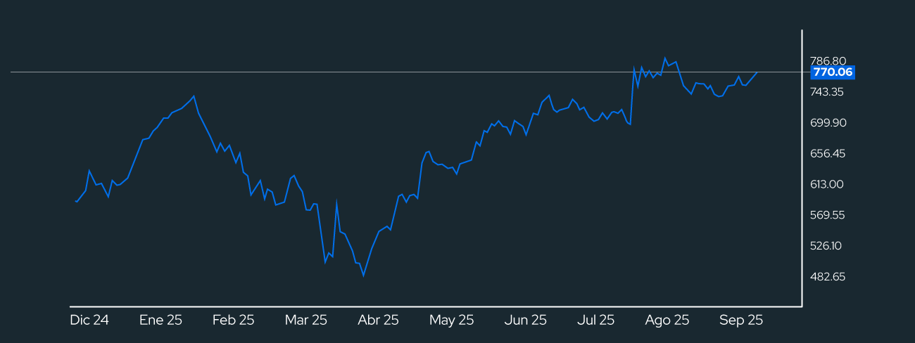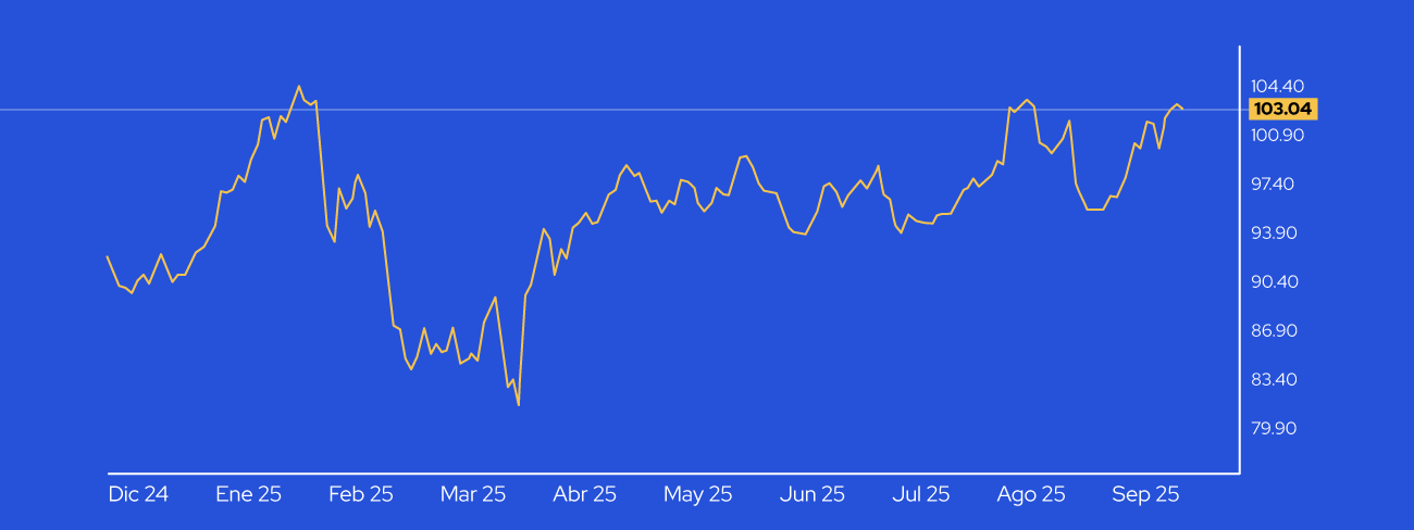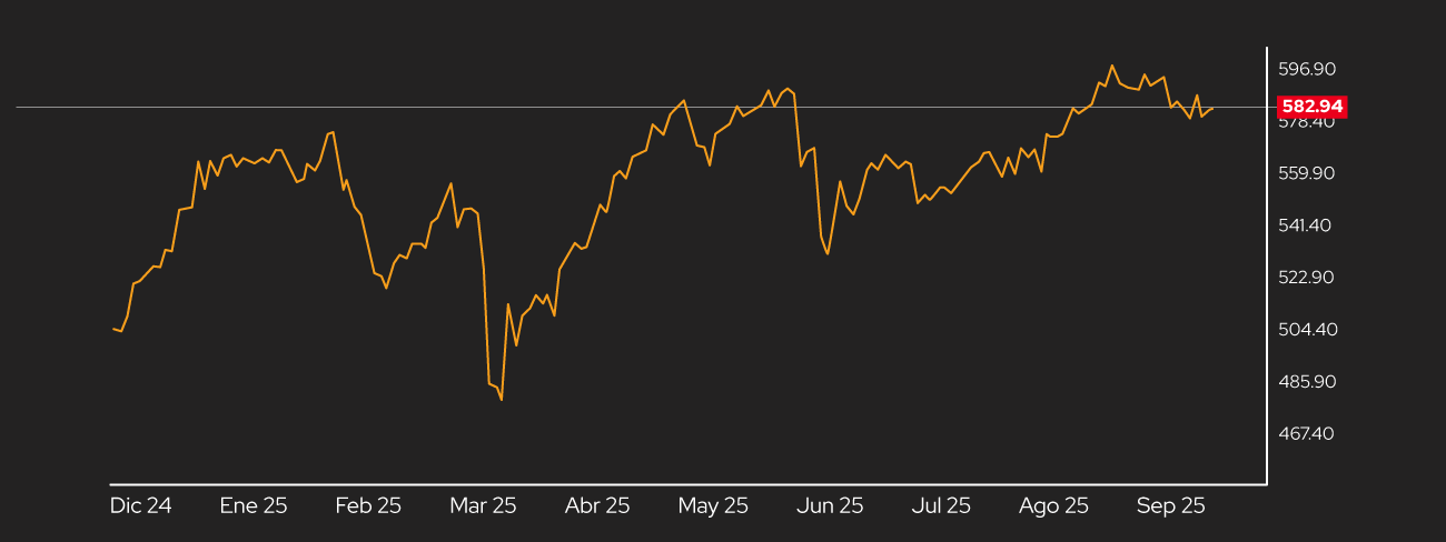En el contexto actual, se suma la expectativa de recortes de tasas por parte de la Reserva Federal de los EEUU. Tasas de interés más bajas tienden a favorecer el consumo, el credito y afecta positivamente a la renta variable, lo que podría impulsar aún más al mercado, el cual ha mostrado un crecimiento de 35% del S&P500 desde abril de este año, luego del denominado “liberation day”.